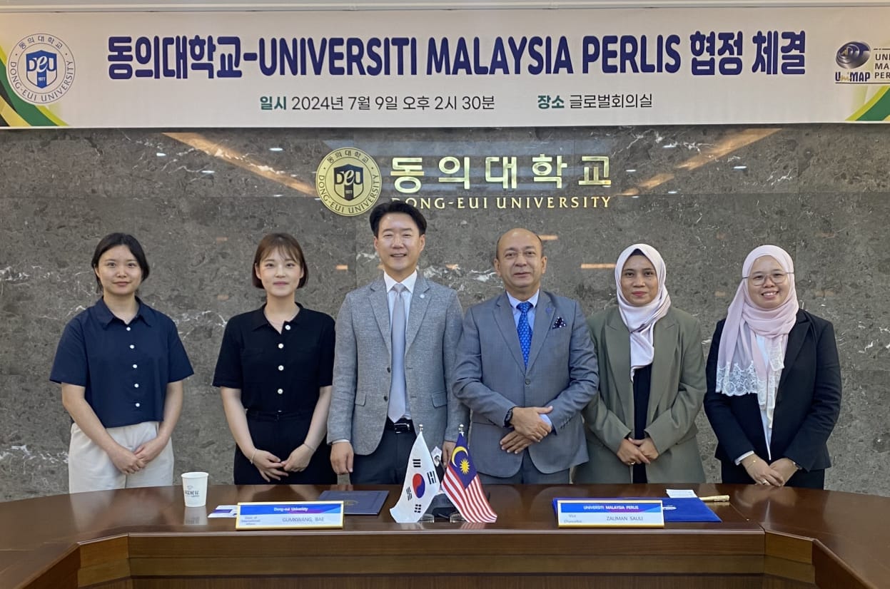 UniMAP terus mengorak langkah ke hadapan di bumi Korea apabila memperkukuhkan jalinan kerjasama menerusi Memorandum Persefahaman (MoU) dengan lawke Dong-Eui University (DEU) yang diwakili Dr. Gumkwang Bae, Dean of International Affairs, DEU manakala UniMAP diwakili Naib Canselornya, Prof Dato’ Ts Dr Zaliman Sauli. Kerjasama UniMAP-DEU telah bermula sejak 2018 melalui program UniMAP Korean University Student Travel Programme (UniKU) yang merupakan sebuah program mobiliti antarabangsa pelajar melibatkan penukaran pembelajaran bahasa dan budaya. Seramai 24 pelajar UniMAP akan terlibat bagi UniKU 2024 bagi tempoh 3 minggu yang akan bermula pada bulan Ogos nanti. Delegasi UniMAP turut mengadakan perbincangan bersama pengurusan DEU untuk meningkatkan lagi program-program akademik dan mobiliti antarabangsa yang boleh memberi impak kepada kedua-dua institusi pendidikan tinggi.